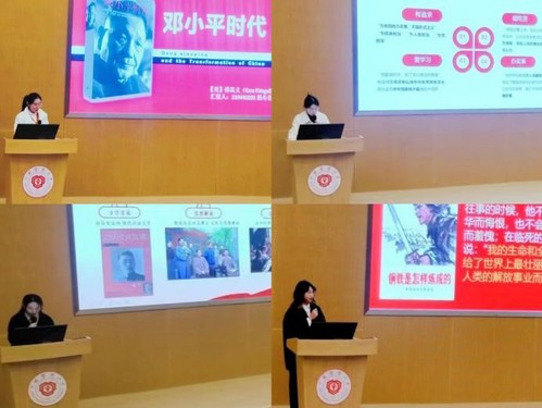 随后,现场入党积极分子结合新时代大学生的使命担当与自身成长历程,分别分享了《习近平的七年知青岁月》《新青年(文选)》《邓小平时代》《钢铁是怎样炼成的》四本书,与现场师生共话初心使命,鼓励大家将个人追求和祖国、人民的利益联系在一起,坚定理想信念,担当青年责任,锤炼过硬本领,感悟奋斗价值。