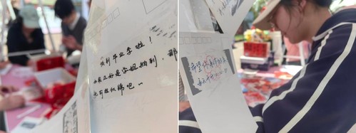 第一个环节“共续樱缘”明信片交换活动。此次明信片设计别出心裁,采用“刮刮乐”的形式,同学们将满载心意的明信片投入纸箱,由工作人员进行覆膜,当下一位同学取出时,只有刮开覆膜才能知晓明信片的内容。更有盖有樱花印章的“隐藏款”明信片,幸运者将有机会参与抽奖,收获更多惊喜。同学们用真心为彼此送上诚挚的祝福,同时在“刮刮乐”中收获别样的幸福和喜悦。一笔一画间的真情流露,一字一句的诚挚问候,让同学们在忙碌的学习生活中感受到宁静与温暖,让他们在彼此的祝福与关怀中感受到集体的力量。