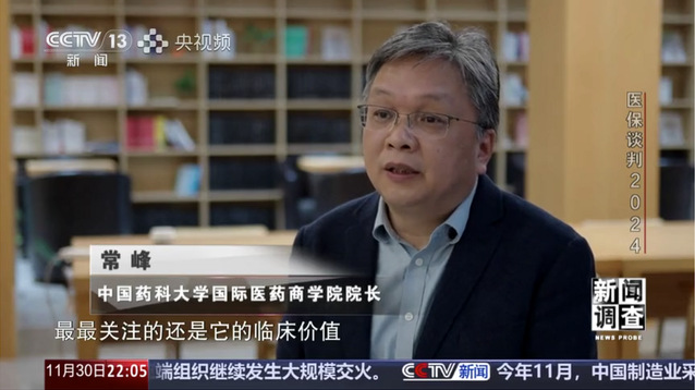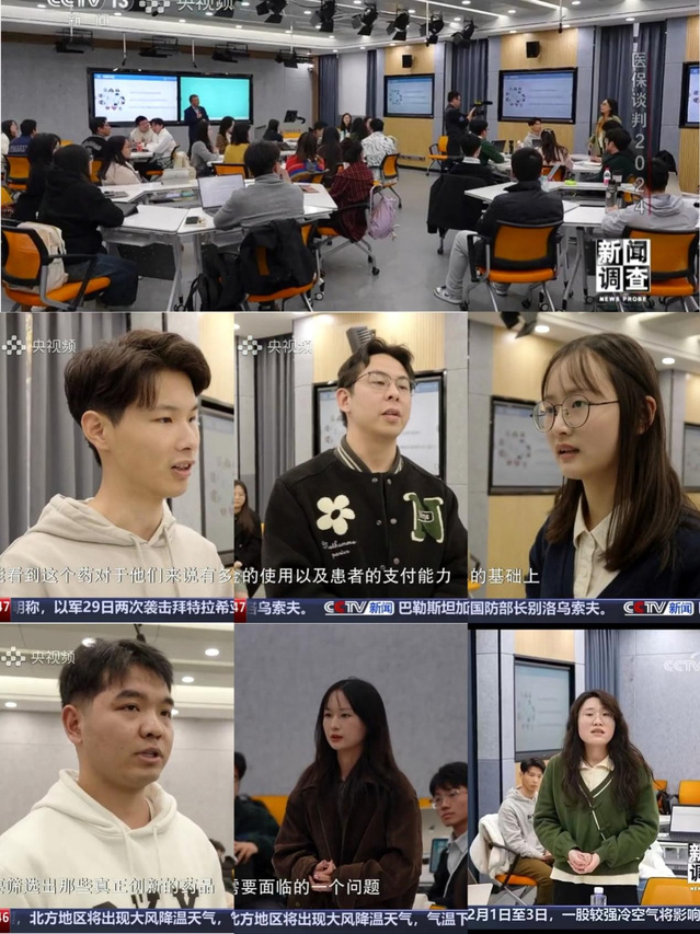 国家医保药品谈判关乎广大参保患者福祉利益的重要民生工程,一直是社会公众和医药行业关注的焦点。在医疗保障局公布《2024年国家基本医疗保险、工伤保险和生育保险药品目录》之际,中央广播电视总台新闻频道于20241130日,通过《东方时空》和《新闻调查》栏目,分别以《医保谈判桌上的“神秘信封” 专家组成员解密“信封底价”如何定?》和《2024医保谈判 “国谈”场内场外的故事》为题,进行了专题报道。通过聚焦我院院长常峰教授在药物经济学课堂上的讲解,揭示医保定价的底层逻辑。