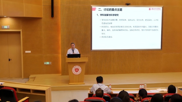 常峰院长介绍学院事业发展大讨论的重点主题,聚焦学科发展与科学研究、教学改革与国际合作办学、学生管理与学生发展等多方面开拓创新,鼓励师生积极建言献策。