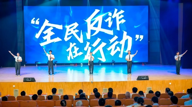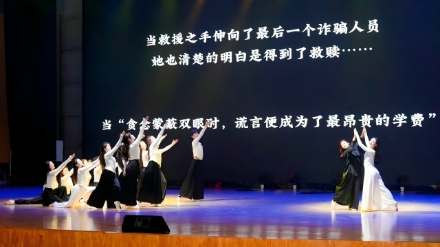 金陵科技学院的《新型诈骗集团》用缜密的逻辑拆解AI换脸、虚拟货币等新型骗局,以舞台艺术揭开诈骗分子的数字伪装。