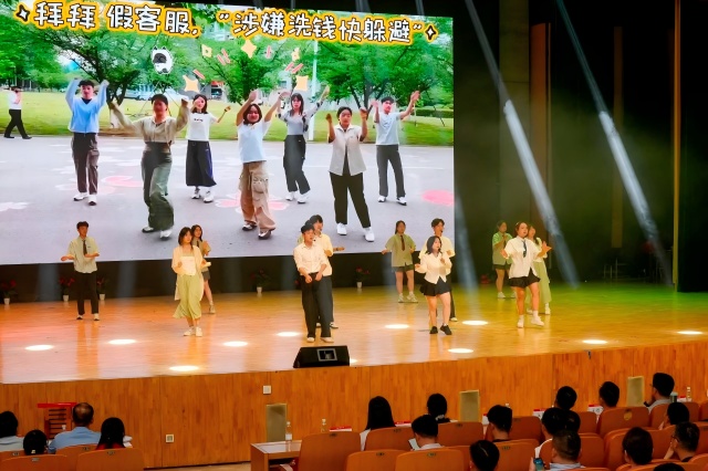 活动伊始,各高校依次进行反诈才艺表演。中国药科大学的《反诈节奏》将流行音乐与反诈知识巧妙融合,让同学们在欣赏表演的同时,增强了对诈骗手段的防范意识。