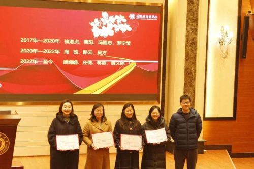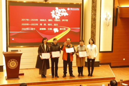 常峰院长全面总结了学院前一阶段高质量发展大讨论的成果,结合学院学科发展现状、存在的危机及未来的发展目标对2023年及今后一段时期学院学科发展的重点目标、师资引进及人才培养的重点方向进行了明确,对有组织的科研、有组织的教学研究及其他重点工作工作进行了安排部署,对推进相关工作的具体路径及相关制度措施进行了阐述。茅宁莹副院长对新学期教学工作进行了安排,并主持了学院教学督导聘书颁发仪式。丁素军书记对 2022 年学生就业工作进行了总结,对就业工作中做出突出贡献的教师表示感谢,并对2023年春季学期工作做了重点要求,号召教师们坚定理想信念,涵养高尚师德,牢记育人使命,助力学生职业起航,全面落实立德树人根本任务。
