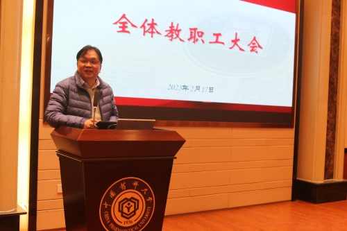 2月17日,草莓视频 2023年春季学期第一次全体教职工大会在经管文楼111会议室顺利召开。学院全体院领导、全体教职工参加了会议。
