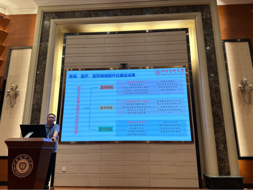 此次专题学习会由学院党委委员颜建周副教授领读领学,他以《坚持人民为中心,充分发挥三医协同发展与治理在保障人民健康中的作用》为题,深刻阐述了“坚持以人民为中心”对于新时代坚持和发展中国特色社会主义的重要意义。他结合学院学科特点和研究领域,通过典型的案例,向大家展示了近年来国家在医保、医疗、医药领域现代化建设中取得的代表性成果,强调只有不断提高药品供应保障水平,强化“医保、医疗、医药”三医联动,才能真正实现有好药、买好药、用好药,让老百姓得实惠。最后,他号召现场教师要坚持不懈用习近平新时代中国特色社会主义思想铸魂育人,引导学生树立坚定的理想信念,他鼓励在场的同学们要增强“药学人”的责任感和使命感,将保障公众健康作为毕生事业,持续推进健康中国建设。
