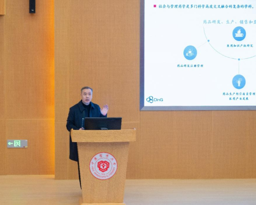 丁锦希教授从学科简介、发展现状、研究领域三个方面详细介绍了社会与管理药学学科内容与教学目的,通过分析国外发展现状,聚焦国内社会与管理药学学科领域课程建设,并总结了历年毕业生就业情况。此外,他还从社会与管理药学学科的研究领域出发,介绍了学院在药品研发、生产、销售和监管方面所具备的师资力量与科研团队,引导同学们加强知识拓展,追求全面发展,成长为能服务社会的高素质人才。
