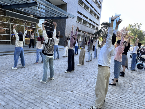活动期间,何冰老师专业讲解并示范动作要领,帮助师生纠正动作错误,现场师生通过锻炼感受身体筋脉的拉伸与肌肉的放松。经过坚持、反复练习与何老师的专业指导,参加练习的师生一致表示,练习八段锦对锻炼身体、活动筋骨、增强免疫力、调节心理压力等方面具有显著效果。