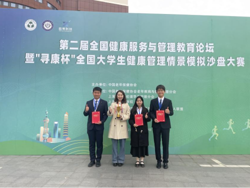 12月10日,由中国老年保健协会主办的第二届全国健康服务与管理教育高峰论坛暨第二届“寻康杯”健康服务与管理情景模拟沙盘大赛在上海健康医学院圆满落幕。由学院公共管理系主任唐文熙教授、健康服务与管理专业教研室主任伍琳教师为指导老师,2021级健康服务与管理专业王涛、王毅、甘人玮3名同学共同组成的“中央处理器”代表队荣获本次大赛二等奖。